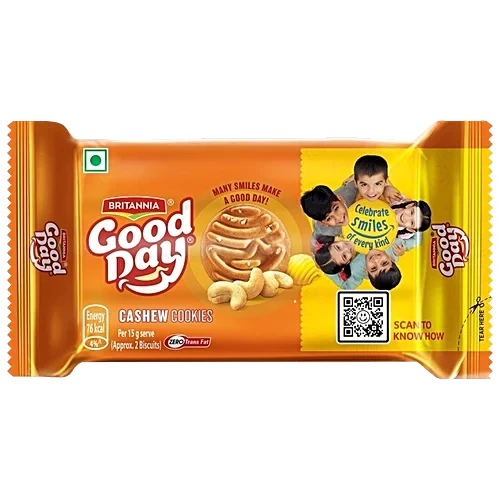 About the Product Britannia Good Day Cashew Cookies are delicious crunchy cookies made with rich cashews. These melt-in-mouth cookies with their delicious nutty taste are perfect with a cup of tea or to satisfy those mid-meal hunger pangs. Britannia biscuits, cookies, cakes and rusk are a perfect companion for your tea. Believing in delivering wholesome and delicious products, Britannia India manufactures some of India's favourite brands like 50-50, Tiger, NutriChoice, Bourbon, Milk Bikis and Marie Gold. Ingredients Refined Wheat Flour (Maida), Sugar, Edible Vegetable Oil, Cashew Nuts, Invert Syrup, Milk Solids, Butter, Iodised Salt, Nature Identical and Artificial Flavouring Substances- Vanilla and Milk. How to Use Ready to eat.