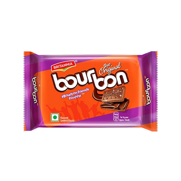 Britannia Bourbon - The Original Choco Creme sandwich biscuits are a delightful combination of smooth choco creme and crunchy choco biscuits topped with sparkling sugar crystals. Every bite of these delicious, chocolaty and indulgent cookies entices you to have more and more. Britannia Bourbon fuels every BFF's ever-growing hunger for fun and fulfilling moments. Made with love, since 1955. Ingredients Refined Wheat Flour, Edible Vegetable Oil, Sugar, Edible Starch, Cocoa Solids, Milk Solids, Raising Agents, Iodised Salt, Nature Identical Artificial Flavouring Substance- Vanilla Chocolate. How to Use Ready to eat biscuits. Store in a cool and dry place. Please transfer the contents to a clean airtight container once the pack is opened. Storage Store in a cool and dry place.