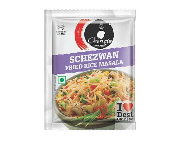 Craving for some spicy Schezwan rice, but every door-step delivery seems run off the mill? How about making Schezwan rice at home! With just a little bit of rice and a sprinkling of Ching's Schezwan Fried Rice masala, you have a dish that's as hot as it gets. Try it today! Ingredients Salt, Spices 30% (Garlic, Red Chilli, Onion, Ginger, Schezwan Pepper), Soy Bean Powder (Soy Bean, Wheat, Salt), Disodium 5'-Guanylate, Disodium 5'-Inosinate, (Flavour Enhancers E627, E631), Silicon Dioxide (Anticaking Agent E551), Citric Acid (Acidifying Acid E330), Sunflower Oil, Yeast Extract, Paprika (Natural Colour E180(c). Features Easy-to-cook Desi Chinese meal kit No need to add salt, spice or sauce Contains the exact balance of spice mix required Amazing, Authentic Desi Chinese flavours Contains: Schezwan Fried Rice Masala, Paneer Chilli Masala, Chowmein Hakka Noodles Masala, Veg Manchurian Masala Nutritional Facts Amount Per Serving: 20g Calories from Fat 8.1