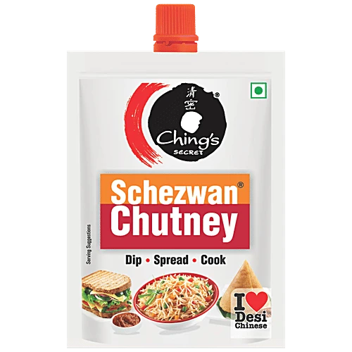 About the Product Schezwani Tadka! Chings Schezwan Stir-Fry Sauce is a delicious fusion of colour, heat and aroma with its fiery red chillies, ginger-garlic Sichuan peppercorns and Desi Chinese masalas. Add Schezwani tadka to fried rice and chowmein. Use it as a lively dip for chicken lollipops, bhajiyas, spring rolls or wontons. Ingredients Water, Dried Glucose Syrup, Ginger, Sunflower Oil, Salt, Chilli, Sugar, Garlic, Onion, Corn Starch, Disodium 5'-Ribonucleotides (Flavour Enhancer, £635), Acetylated Distarch Adipate (Thickener, E1422), Acetic Acid (Acidifying Agent, E260), Spices (White Pepper, Schezwan Pepper), Sodium Benzoate (Preservative, E211), Celery, Soy Sauce Powder (Soybean, Wheat, Salt). Contains Added Flavours (Natural Flavouring Substances) Contains Permitted Class Ii Preservative Features Add Schezwani tadka to fried rice and chowmein Made with quality ingredients Use as schezwani dip with any snack 100% vegetarian How to Use You can make tasty Chicken lollipop by mixing the chutney with the batter, or you can simply serve it as a dip. The chutney can also be mixed with the potato filling to make your aloo paranthas spicy and delicious. This chutney can act as delectable pizza base and then can be loaded with vegetables and cheese.