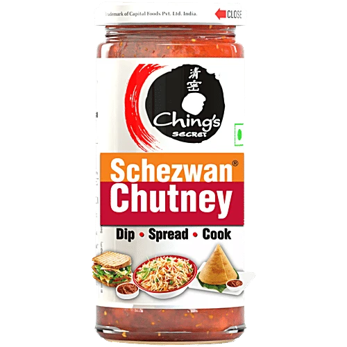 About the Product Schezwani Tadka! Chings Schezwan Stir-Fry Sauce is a delicious fusion of colour, heat and aroma with its fiery red chillies, ginger-garlic Sichuan peppercorns and Desi Chinese masalas. Add Schezwani tadka to fried rice and chowmein. Use it as a lively dip for chicken lollipops, bhajiyas, spring rolls or wontons. Ingredients Water, Dried Glucose Syrup, Ginger, Sunflower Oil, Salt, Chilli, Sugar, Garlic, Onion, Corn Starch, Disodium 5'-Ribonucleotides (Flavour Enhancer, £635), Acetylated Distarch Adipate (Thickener, E1422), Acetic Acid (Acidifying Agent, E260), Spices (White Pepper, Schezwan Pepper), Sodium Benzoate (Preservative, E211), Celery, Soy Sauce Powder (Soybean, Wheat, Salt). Contains Added Flavours (Natural Flavouring Substances) Contains Permitted Class Ii Preservative Features Add Schezwani tadka to fried rice and chowmein Made with quality ingredients Use as schezwani dip with any snack 100% vegetarian How to Use You can make tasty Chicken lollipop by mixing the chutney with the batter, or you can simply serve it as a dip. The chutney can also be mixed with the potato filling to make your aloo paranthas spicy and delicious. This chutney can act as delectable pizza base and then can be loaded with vegetables and cheese.