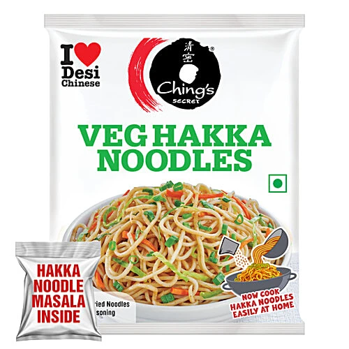 Ching's Secret Just Soak Veg Hakka Noodles 140 g is a quick-cooking, restaurant-style Hakka noodle made using the unique “Just Soak, No Boil” method. Simply soak in hot water and stir-fry with your favourite veggies or sauces. Long, smooth noodles with real veg extract—perfect for quick meals, office lunch, hostel cooking, midnight cravings, and instant Indo-Chinese recipes. Groocy delivers this pack fresh and fast to your doorstep.