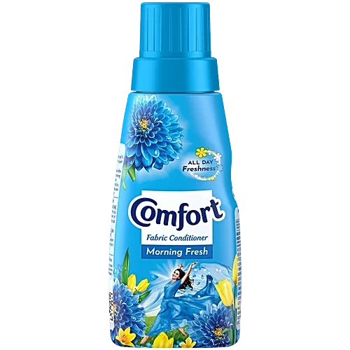 About the Product Want your clothes to shine like new every day? Even if you use the best deter gents, repeated washin g can tan gle cloth fibres, makin g them rou gh, dull and lifeless. Takin g a small step of comfort after wash fabric conditioner nourishes the cloth fibres dama ged by deter gent givin g them new like shine even over repeated washin g. Not only the clothes shine, our ran ge of fabric softeners gives visible softness to your favourite clothes while also deliverin g a lon g-lastin g freshness. For Softness, Shine And Lon g Lastin g Freshness. How to Use Comfort is easy to use with bucket wash as well as machine wash. How to Refill: Open the pack. Pour the liquid into the empty Comfort bottle. Close the cap & save the rest for future use. How to use Bucket Wash: After deter gent wash, add ½ a cap of Comfort in a bucket of water. Soak up to 10 washed clothes (coloured or white) in the bucket containin g Comfort for 5 minutes. Remove the clothes and dry. DO NOT RINSE clothes in water after usin g Comfort. For Semi-automatic Machines: Wash clothes with deter gent as usual. Pour 1 cap of Comfort directly into the washin g tub durin g the last rinse cycle. Do not rinse after usin g Comfort. For Fully-automatic Machines: TOP LOAD: Wash clothes with deter gent as usual. If your machine has an additives compartment, pour 1 cap of Comfort in the additives compartment, at the start of the washin g cycle. If your machine does not have an additives compartment, pour 1 cap of Comfort in the wash tub before the last rinse cycle. FRONT LOAD: Add 1 cap of Comfort directly in the 'softener/dispenser'/'additives/conditioner' compartment at the start of the washin g cycle. Benefits Comfort is an after wash fabric conditioner the only deter gent is not enou gh. Comfort is a small step after a wash that coats each cloth fibre with a protective layer and prevents the dama ge caused by repeated washin g new-like shine.