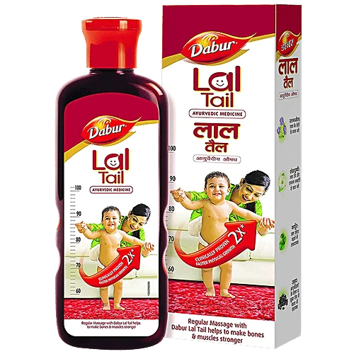 Dabur Lal Tail is a specially crafted Ayurvedic baby massage oil made with time tested ingredients that have many proven benefits for babies. It is clinically tested proven to give 2x faster physical growth*. It contains Ratyanjot which helps protect the baby’s skin, camphor which helps with blood circulation, Shankhpushpi which is good for skin health and in weakness, and Urad nourishes muscles and bones.