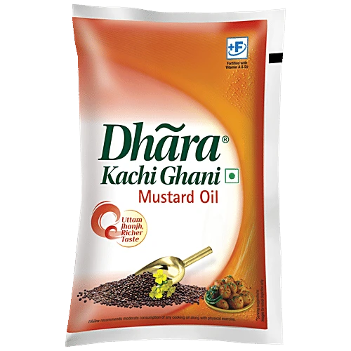 Dhara Kachi Ghani Mustard Oil has a distinctive pungent odour and is known for its antimicrobial properties. It gives a rich aroma and flavour to food. It is a good source of monounsaturated fatty acid with natural omega 3 (or alpha linolenic acid). It also contains the lowest saturated fatty acid among all edible oils.