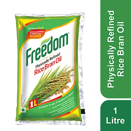Experience the purity of Freedom Physically Refined Rice Bran Oil, crafted for a healthy lifestyle.