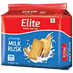 About the Product Frozit Milk Rusk is a traditional tea companion and is loved by many. It is as crispy as your traditional rusk, but with comes, Butter and the right amount of sweetness: its taste will leave you amazed. Rusk will also be sharing those moments of joy. Ingredients Refined Wheat Flour (Maida), Invert Syrup, Margarine, Sugar, Refined Palm Oil, Orange Puree (5.4%), Humectants [420(i), 420(ii)], bakery Improver Mix {Emulsifiers [481(i) &471], Anticaking Agent [170(i)], Flour Treatment Agents [1101(i) & 1101(i)] And Antioxidant (300)}, Yeast, Vital Gluten, Milk Solids, Stabilizer (440), Iodised Salt, Emulsifier(471), Apple Puree, Acidity Regulator(330,296), Preservatives (282, 202), Butter, Nature Identical Flavouring Substances And Colours (110, 100) Nutritional Facts Per 100g: Energy 439 kcal Protein 9.3g Carbohydrate 80.2g of which Total Sugars 21.7g Added sugar 21.2g Total Fat 9g Saturated Fatty Acids 4.4g Mono Unsaturated Fatty Acids 3.2g Poly Unsaturated Fatty Acids 1.1g Trans Fatty Acids 0g Cholesterol -3.1mg Sodium -230mg How to Use Ready to eat.