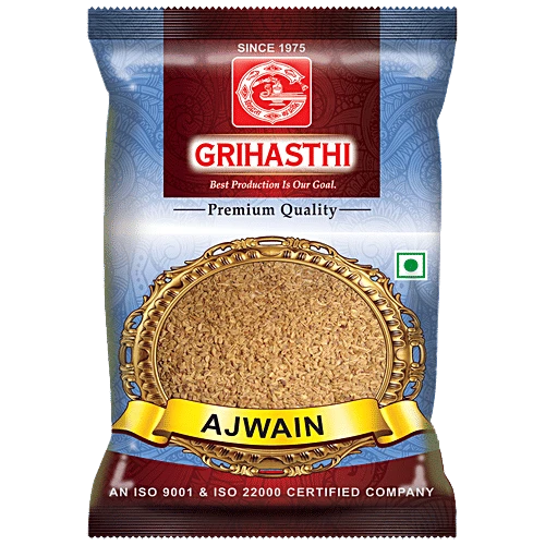 Are you looking for the best brand for Ajwain? Then your search ends here with Grihasthi Ajwain. It acts as an appetizer, strengthens the digestive process and promotes the absorption of nutrients. It is prepared and packed in a hygienic condition to ensure better quality and authentic flavour. Ajwain is a rich source of natural nutrients. It strengthens the digestive process by activating the secretion of digestive juices and improving appetite.