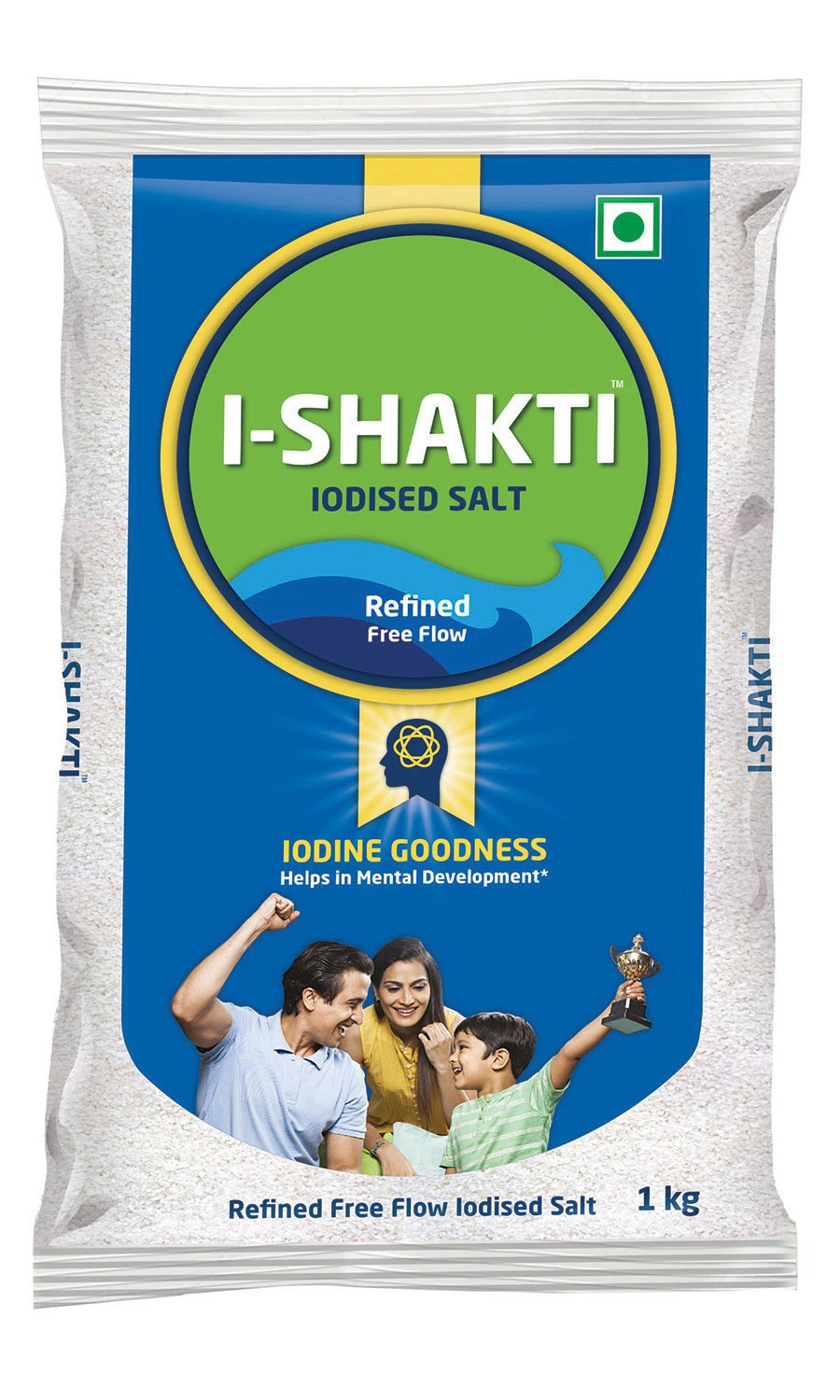 I-Shakti Salt Contains requisite amount of Iodine it is generally accepted that Iodine helps in proper mental development of children and prevents Iodine deficiency disorders, I-Shakti Salt is naturally sun dried and produced in hygienic conditions to bring you purity, goodness and free flow to ensure uniform sprinkling on your food. Ingredients Edible Common Salt, Permitted Anti-Caking Agent-551, Potassium Iodate Crystal Modifier-536 (Iodine Content above 15 ppm). Nutritional Facts Per 100 gs (Approximate values), Energy 0 Kcal, Fat, Carbohydrate, Protein 0g, Vitamins 0g, Fatty Acids, Cholesterol 0 g, 0 mg, Sodium 38.7 g, Iodine >15 ppm.