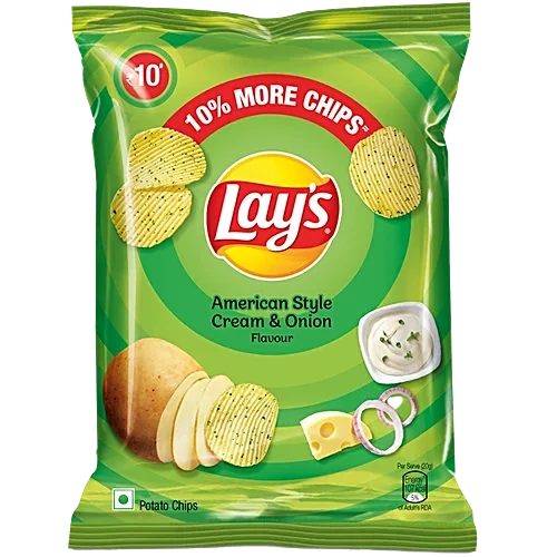 About the Product Relish the delectable combination of sour and cream perfectly blended with herb and onion flavour. Delicious individual bags: perfect for snacking at work, home or school. Combining two great flavours, this one is absolutely delicious! Call your friends over or get ready to watch a movie no matter what you do, make sure you have this yummy snack close by. Lays, the worlds largest and favourite snack food brand, has steadily established itself as an indispensable part of Indias snacking culture since its launch in 1995. With its irresistible taste, international and Indian flavours, Lays has established itself as a youth brand and continues to grow in the hearts and minds of its consumers. Lays is made with Indias best-quality fresh potatoes, simply sliced and cooked in edible vegetable oils, and then seasoned with delicious flavours! Ingredients Potato, Edible Vegetable Oil, Salt, Sugar, Spices & Condiments sed as natural flavouring agents (Onion Powder, Parsley Powder, Pepper Powder), Milk Solids (1.3%), Cheese Powder (0.1%), Wheat Fibre, Starch. How to Use Ready to eat