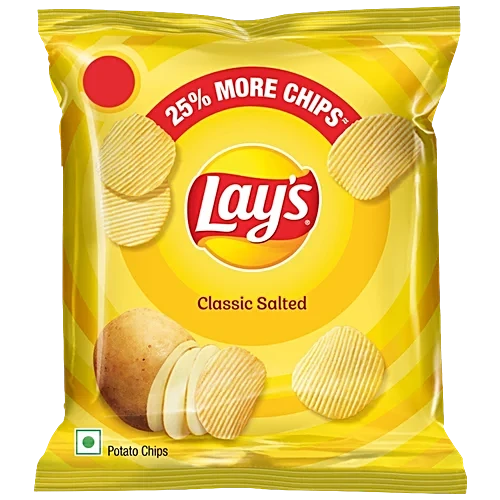 About the Product Experience the signature taste with best quality potatoes sprinkled with salt. Each bag of Lays Classic Salted Potato Chips is a reminder of how good the simple life is. Delicious individual bags- perfect for snacking at work, home or school. About the brand- Lays, the worlds largest and favourite snack food brand, has steadily established itself as an indispensable part of Indias snacking culture since its launch in 1995. With its irresistible taste, international and Indian flavours, Lays has established itself as a youth brand and continues to grow in the hearts and mind of its consumers. Lays is made with Indias best-quality fresh potatoes, simply sliced and cooked in edible vegetable oils, and then seasoned with delicious flavours!