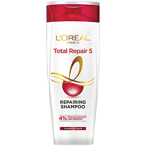 5 Problems. 1 Solution. L'Oreal Paris Total Repair 5 Repairing Shampoo helps fight against the five visible signs of damaged hair - hair fall, dryness, roughness, dullness, and split ends without weighing it down.