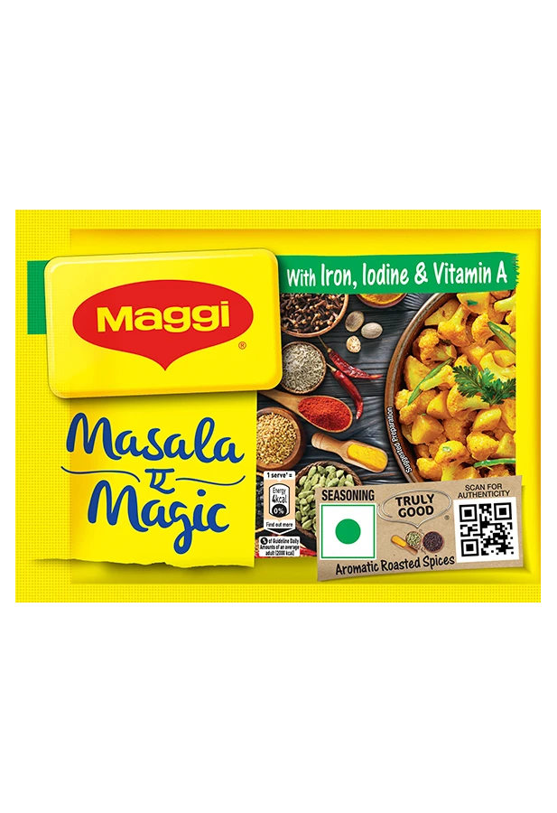 MAGGI Masala-ae-Magic is the magic, secret ingredient for those who cook daily as it enhances the taste of everyday vegetables and makes them extraordinarily tasty. This perfect blend of 10 choicest, aromatic and roasted spices is a great cooking aid to mothers everywhere because it adds that flavorful taste and aroma to your everyday dishes, which is loved by kids. MAGGI Masala-ae-Magic Share Bag contains 12 single-serve sachets that can be used for a variety of everyday dishes that range from vegetables like Aloo Gobhi, Bhindi, Dal, Paneer etc. to pasta, biryani and many more.