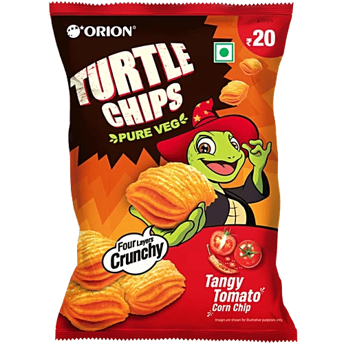 Orion Turtle Chips - Tangy Tomato is a snack that is flavourful, crunchy and delicious! These crunchy and delicious corn chips are 100% pure vegetarian. They're great for snacking on when you're craving something crunchy or as a great source of protein on an everyday basis. They're great on the go, with dips or as a snack. You can even add them to salads or stir-fry dishes for some added texture.