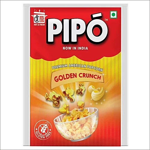 About the Product Spend your golden times alongside friends with PIPO's golden crunch. It is gluten and cholesterol free which makes it a very light and healthy snack. Anytime snack to get rid of your food cravings. Just cook, serve in 3 minutes. Ingredients Popping Corn, Refined Edible Palmolein Oil, Iodised Salt And Beta Carotene, Contains Permitted Natural Colour How to Use Empty the contents into a deep, thick-bottomed pan or pressure cooker. Cover with a lid. Leave a small gap facing away from you, allow steam to escape. Cook on medium flame, shake utensil until popping slows down to 1-2 secs between pops. Hot'n'Fresh popcorn ready in just 3 minutes! Storage Store in a cool, dry and hygienic place. Keep away from direct sunlight. Once opened, keep in airtight container.