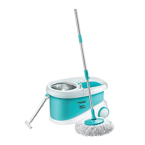 Mop with twin bucket, steel rod for easy movement, drain spout, 360-degree stainless steel spinner, 2 microfibre heads, pulling handle and wheels. This magic mop with twin buckets is aesthetically designed and made of high-grade plastic.