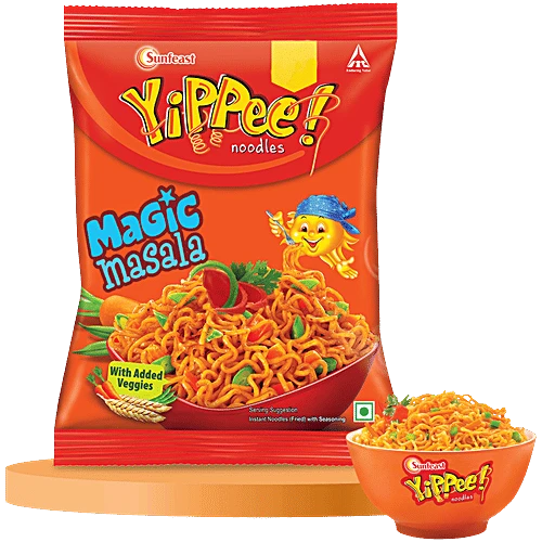 Looking for a snack filled with magic, masala and masti? Then Sunfeast YiPPee! Magic Masala Noodles is just what you were looking for. Every bite will simply dazzle your taste buds. Made with the finest ingredients and the goodness of real vegetables. YiPPee!'s a delicious mix of Indian spices gives it the much-loved magical masala taste. The goodness of vegetables adds more texture and a healthy dash of colour to every bite of Noodles!