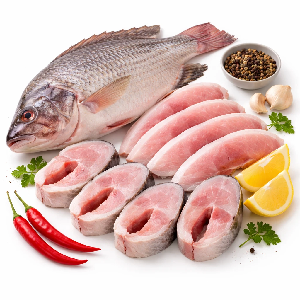 Tilapia Fish is a mild-flavoured freshwater fish known for its tender texture and versatility in cooking. It has a delicate taste that absorbs spices and marinades well, making it suitable for a wide range of recipes. Tilapia can be prepared through frying, grilling, baking, steaming, or curry-based cooking. The firm yet soft flesh makes it easy to cook evenly and serve in both traditional Indian fish curries and continental-style dishes. It is commonly preferred for everyday meals due to its balanced flavour and adaptability in various culinary preparations.