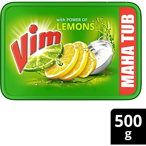Vim Lemon Dishwash Bar is a powerful grease-cutting bar enriched with lemon extracts that easily removes sticky oil, burnt stains, tough food residue, and foul odour from utensils. It produces rich foam, cleans faster, and leaves steel, aluminium, copper, brass, and non-stick cookware sparkling clean and fresh. Gentle on hands and perfect for everyday kitchen use.