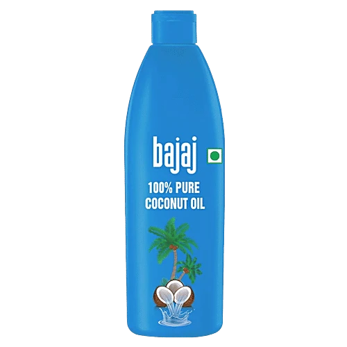 Bajaj Coconut oil is made from 100% Pure coconut, contains only the goodness of 100% pure coconut oil. Naturally, sourced coconuts of premium quality are extracted through a hands-free process from their nuts.