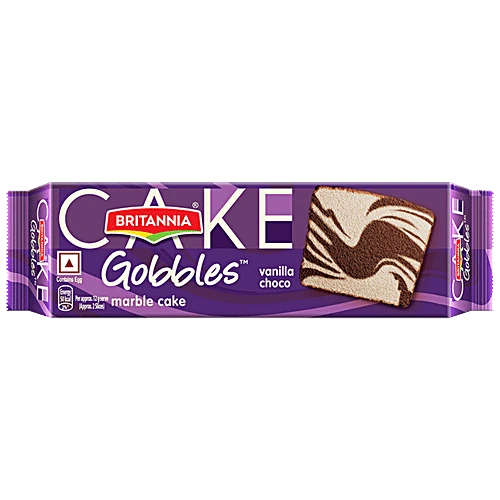 About the Product Britannia Vanilla Choco Marble Cake has soft and delicious cake slices with the goodness of vanilla, choco and eggs. With the best all-natural ingredients, each bite gives a mouth-watering flavour. Britannia Cakes have soft spongy and fluffy slices that deliciously melts in your mouth. Believing in delivering fresh and healthy products, Britannia India manufactures some of India's favourite cakes. Ingredients Refined Wheat Flour (Maida), Sugar, Eggs, Refined Vegetable Fat, [Interesterified Vegetable Fat], Sesame Oil, Emulsifier (471), Antioxidant (319) & Vitamin A], Humectants [422 & 420(Ii), Refined Palmolein Oil High Maltose Syrup, Edible Maize Starch, Liquid Glucose, Cocoa Solids (1%), Cake Gel (Emulsifiers And Stabilizers (471 & 477) And Humectant 420(Ii), Raising Agents [341(I), 500(Ii) & 450(I)], Invert Sugar Syrup, Iodised Salt, Preservatives (202, 200 & 282), Baking Powder, Stabilizer (415) And Acidity Regulator (330). Contains Permitted Natural Food Colours (150C & 150D) And Added Flavours [Nature Identical & Artificial (Vanilla) Flavouring Substances]. (Numbers In Brackets As Per International Numbering System) Contains Wheat And Eggs. Nutritional Facts Serving Size: 17g (approx. 2 Slices) No. of Serving per pack-About 21/2 Approx. Values per 100g / Per Serve (%) RDA Energy-414kcal/[4], Protein-6.3g, Carbohydrate-58.5g, of which Sugars-27.2g, Added Sugars-26.5M9], Total Fat-17.2g/[4], Saturated fatty acids-8.9g/[7], Monounsaturated fatty acids-6.2g, Polyunsaturated fatty acids-1.6g, Trans fatty acids-Og/[0], Cholesterol-82mg, Sodium-184mg/[2]. "Guideline Daily Amount of an average adult (based on 2000 kcal diet) Serving Size: 17g (approx. 2 Slices) No. of Serving per pack-About 21/2 Approx. Values per 100g / Per Serve (%) RDA Energy-414kcal/[4], Protein-6.3g, Carbohydrate-58.5g, of which Sugars-27.2g, Added Sugars-26.5M9], Total Fat-17.2g/[4], Saturated fatty acids-8.9g/[7], Mono unsaturated fatty acids-6.2g, Poly unsaturated fatty acids-1.6g, Trans fatty acids-Og/[0], Cholesterol-82mg, Sodium-184mg/[2]. "Guideline Daily Amount of an average adult (based on 2000 kcal diet) Storage and Uses Delicious all-time snack, which can be consumed anytime, anywhere.
