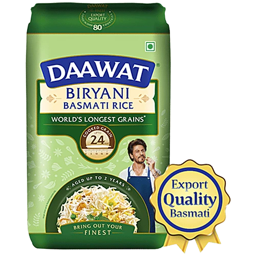 Enjoy long, aromatic, restaurant-style biryani at home with Daawat Biryani Basmati Rice — specially curated for perfect grain length and flavor.