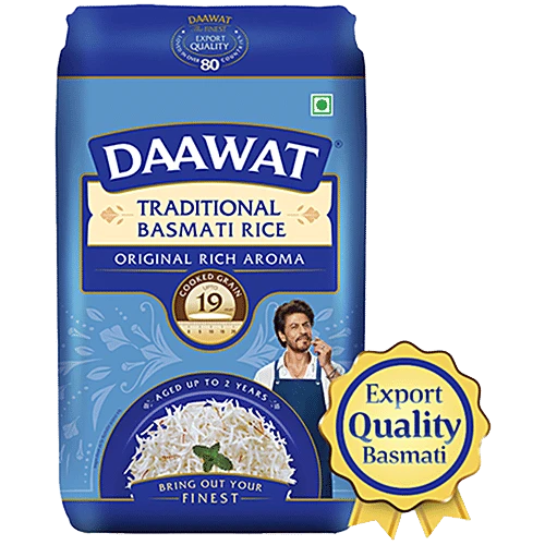 Experience authentic long-grain basmati with Daawat Traditional Basmati Rice — known for its natural aroma, rich flavor, and fluffy texture.