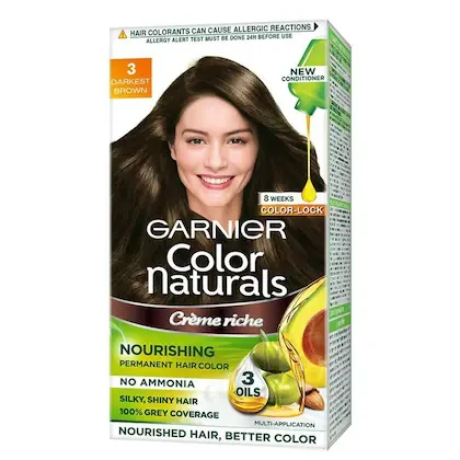 Garnier Color Naturals Creme Riche Ammonia Free Hair Color, Darkest Brown (3) (70 ml + 60 g)