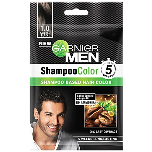 Garnier Men Shampoo Based Hair Color, Natural Black (1.0) 20 ml