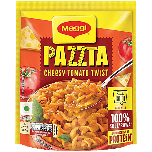 Maggi Pazzta Cheesy Tomato Twist 68.5 g is a delicious, quick-cook pasta packed with a tangy tomato flavour and creamy cheese blend. Made with twist-shaped pasta, it’s perfect for kids, evening snacks, office cravings, hostel meals, school tiffin, movie nights, tea-time snacking, or a quick hunger fix. Ready in just a few minutes, this Pazzta gives a smooth, saucy, cheesy experience loved by all ages. Groocy delivers this mini pasta pack fresh and fast to your doorstep.