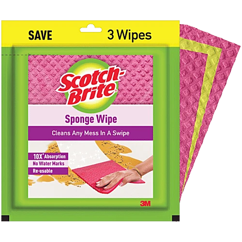 With Scotch-Brite kitchen wipe by your side say goodbye to messy kitchens & daily scrubbing! This miracle wipe made from 100% biodegradable*; soft cellulose absorbs 10X more.