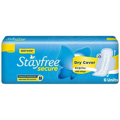 Stayfree Secure Dry Cover Regular Pads provide reliable daily period protection with a fast-absorbing dry cover that helps keep the surface feeling clean and dry.