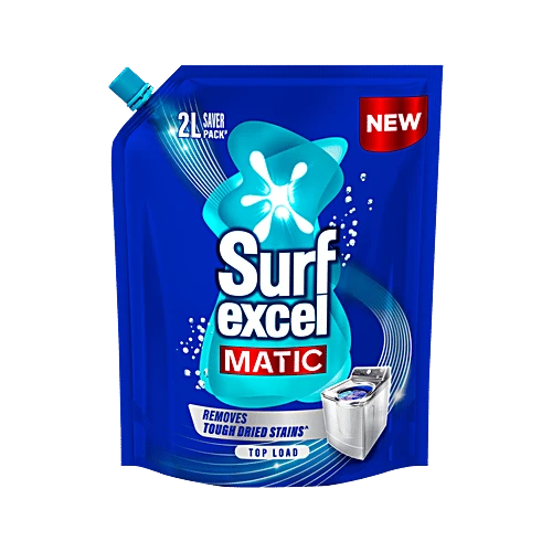 Surf Excel Matic Top Load Liquid Detergent is specially formulated for top-load washing machines. Its advanced liquid formula dissolves instantly, removes tough stains, prevents residue, protects fabric colour, and keeps clothes bright and fresh after every wash. Designed to deliver machine-optimized cleaning, it gives superior wash performance compared to regular detergents and is gentle on clothes.