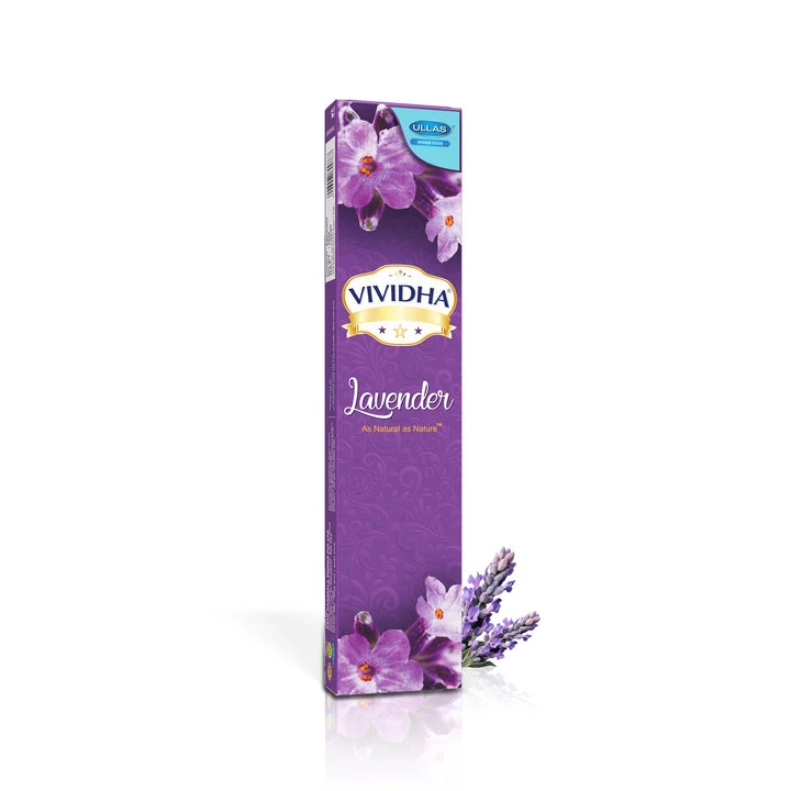 DescriptionEmbrace the calmin g and soothin g qualities of Vividha Lavender. With its gentle lavender scent, this a garbathi promotes relaxation and stress relief, makin g it ideal for meditation and unwindin g after a lon g day.● Fra grances: Indul ge in the soothin g scent of lavender.● Eco-friendly and Non-Toxic: Ullas A garbathies are crafted to be environmentally friendly and non-toxic, emittin g positive ener gy.● Perfect for Meditation: These 9-inch sticks ensure premium burnin g quality, ideal for reducin g stress and enhancin g mental clarity. They come ele gantly packa ged for your convenience.● Creates Luxurious Ambiance: Ideal for any space, these a garbathies help create a luxurious ambiance.