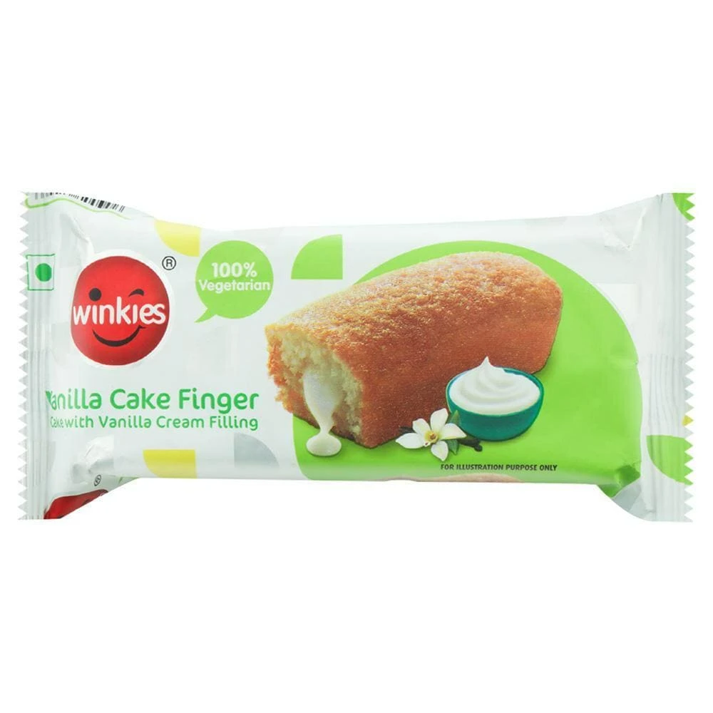 About the Product The mouth-watering Winkies Novo Finger Vanilla Cake contains butter chocolate, which makes it soft and moist with a twist. It is perfectly baked and has a layer of creme filling and is enveloped with a fudge coating. Enjoy the chocolate cake finger and make your tea-time heaven. This delicious snack can be relished by adults and children. Share it with your family and friends and pull out a sweet note together. Ingredient Cake Mix [Refined Wheat Flour, Sugar, Cocoa Solids (11.2%), Milk Solids, Emulsifiers (471, 477, 322), Raising Agents (500(I), 541, 341(I)), Dextrose, Corn Sta Edible Common Salt, Stabilizer (415)], Water, Edible Vegetable Oils (Sunflower, Palm, Coconut And Seasame) Humectant (422), Cake Gel (471, 477, 1520, 420, 412), Class Ii Preservative (200) And Acidity Regulator (260). Contains Permitted Artificial Flavour(S) (Vanilla & Chocolate). (Numbers in brackets as per International Numbering System). Hydrogenated Vegetable Fat used - contains Trans Fat. POLYOLS MAY HAVE A LAXATIVE EFFECT. How to Use Ready to eat.