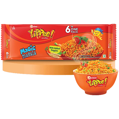 YiPPee Magic Masala Noodles with Added Veggies 420 g (6-in-1 pack) brings a tasty, long, non-sticky noodle experience with a bold masala taste and real veggie bits. Perfect for quick meals, office lunch, hostel cravings, kid’s snacks, travel food, and late-night hunger. Groocy delivers this family-value pack fresh and fast to your doorstep.