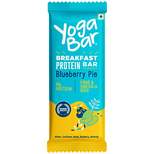 Yogabar Blueberry Pie Protein Bar is a high-protein, nutrient-rich snack loaded with blueberries, nuts, seeds, and wholesome ingredients. Perfect for quick hunger, gym sessions, travel, office breaks, tiffin snacks, and healthy energy on the go. Groocy delivers fresh protein bars safely and quickly to your doorstep.
