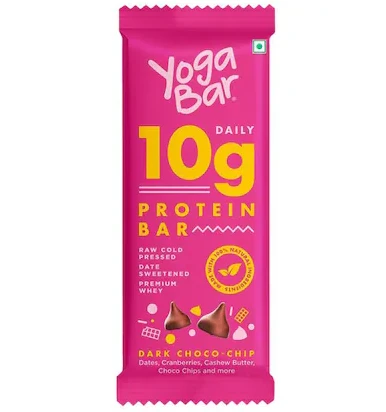 Yogabar Protein Dark Chocolate & Cranberry Bar is a rich, high-protein snack made with dark chocolate, juicy cranberries, nuts, seeds, and wholesome ingredients. Perfect for gym-goers, travel, office breaks, students, and quick healthy snacking. Groocy delivers this nutritious bar fresh and fast to your doorstep.